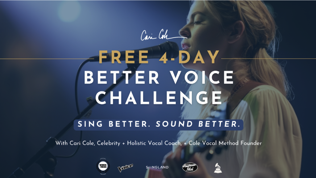 This post helps you get started, but it’s only the beginning. What would it feel like to finally reach your vocal potential and feel an actual transformation in your voice? In my FREE 4-Day Better Voice Challenge you will instantly Sing Better and Sound Better. Walk through 8 Sequences to unlock your voice, decrease strain, anchor your sound and expand your power and resonance. Come join me and learn the methods Grammy winners and legends use to transform their voice and keep them performing at their peak!. Click here to get access.