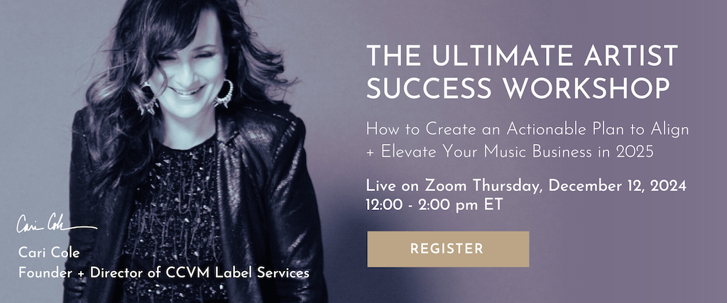 My latest FREE WORKSHOP – The Ultimate Artist Success Workshop: How to Create an Actionable Plan to Align + Elevate Your Music Business in 2025 will take you step-by-step through my Ultimate Artist Success Goal Setting + Planning system to prepare you for a successful year in 2025. Are you ready to build a music career that aligns with your lifestyle and unique goals? You can! Whether your goals are personal or professional—or a blend of both, my proven goal setting process will help you gain the clarity you need to manifest a successful year in music in 2025. Click here to save your spot! Limited seats available!