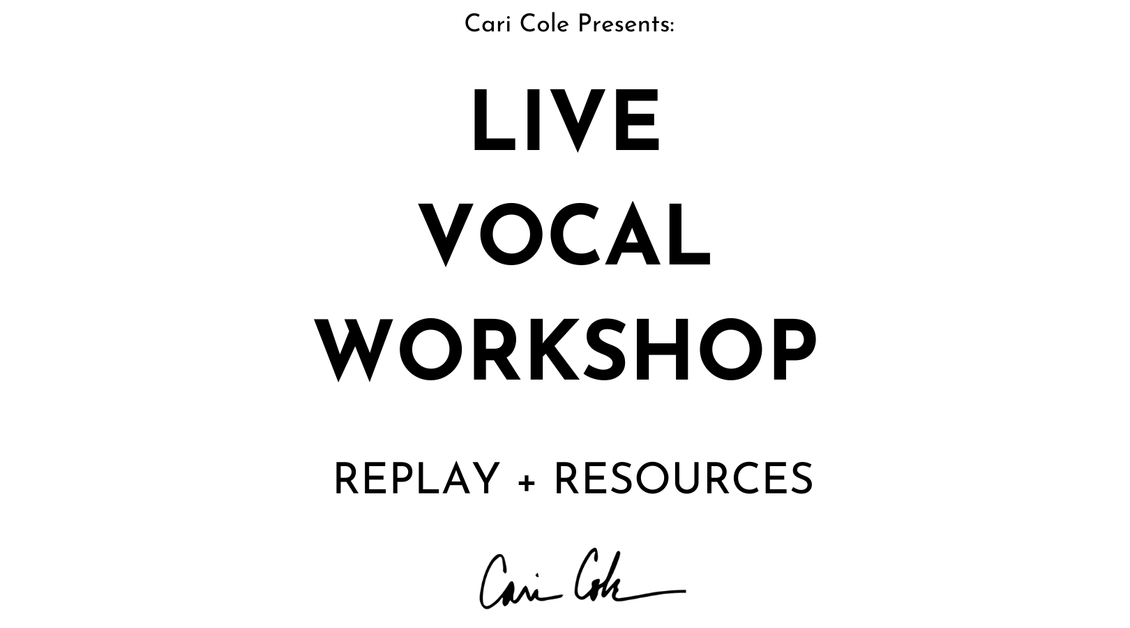 Welcome to Cari's Live Vocal Workshop Event Replay!See below for your full event replay and bonus pdf resources.