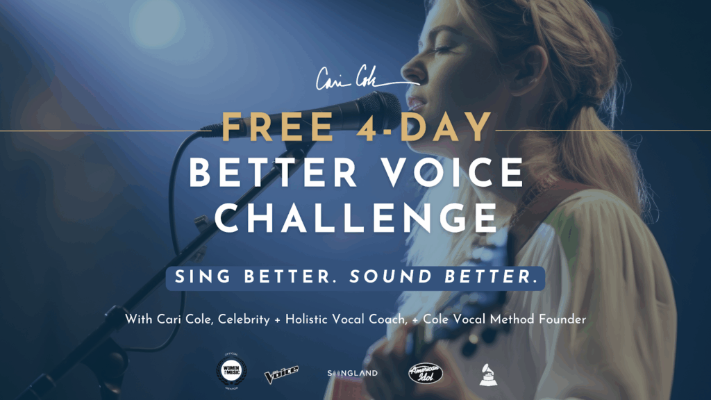 This post helps you get started, but it’s only the beginning. What would it feel like to finally reach your vocal potential and feel an actual transformation in your voice? In my FREE 4-Day Better Voice Challenge you will instantly Sing Better and Sound Better. Walk through 8 Sequences to unlock your voice, decrease strain, anchor your sound and expand your power and resonance. Come join me and learn the methods Grammy winners and legends use to transform their voice and keep them performing at their peak!. Click here to get access.